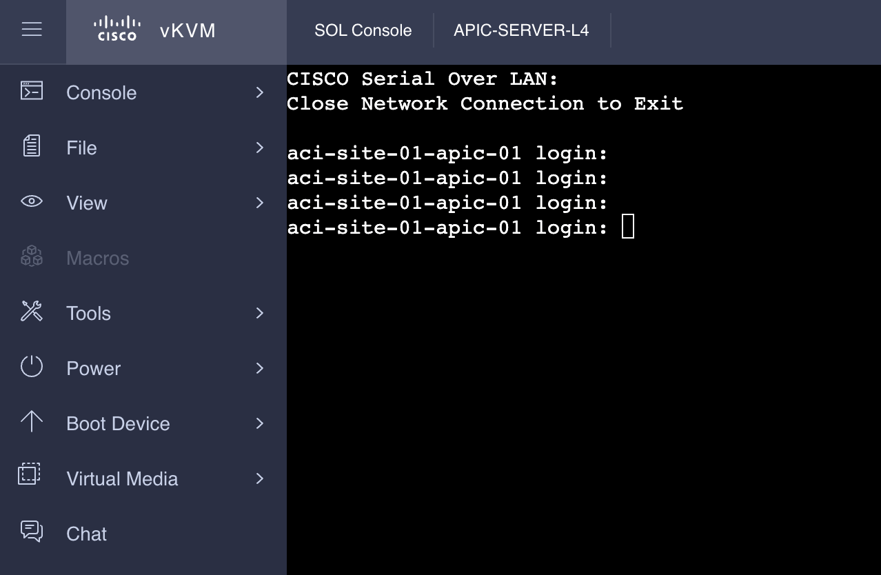 ssh admin@10.1.1.45 C225-WZP# scope vmediaC225-WZP /vmedia # map-www apic http://prod-storage-filer-01.my-domain.com/aci-apic-dk9.6.1.2f.iso- Check the mapping status with